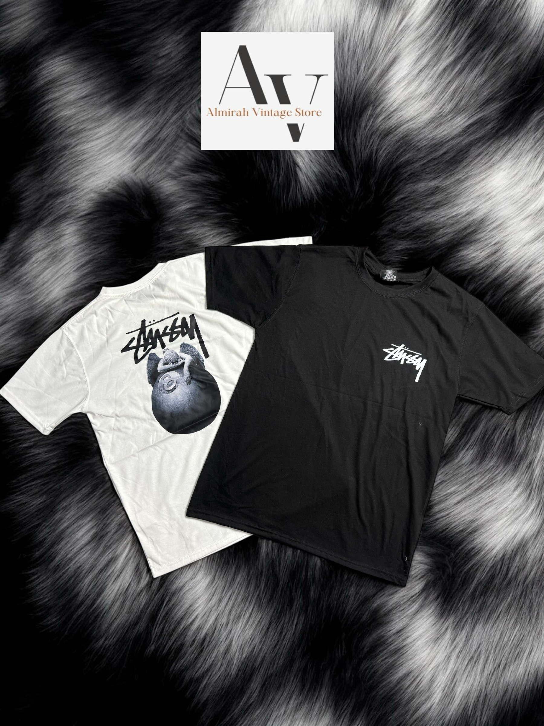 Stussy rework style angel print white and black t shirts