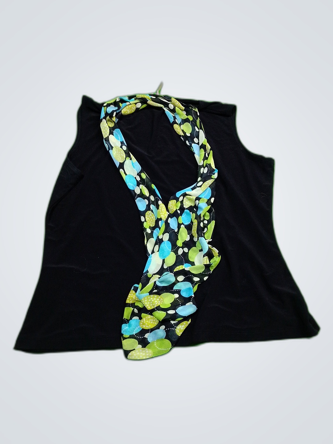 Susan Lawrence Black Top with Floral Scarf