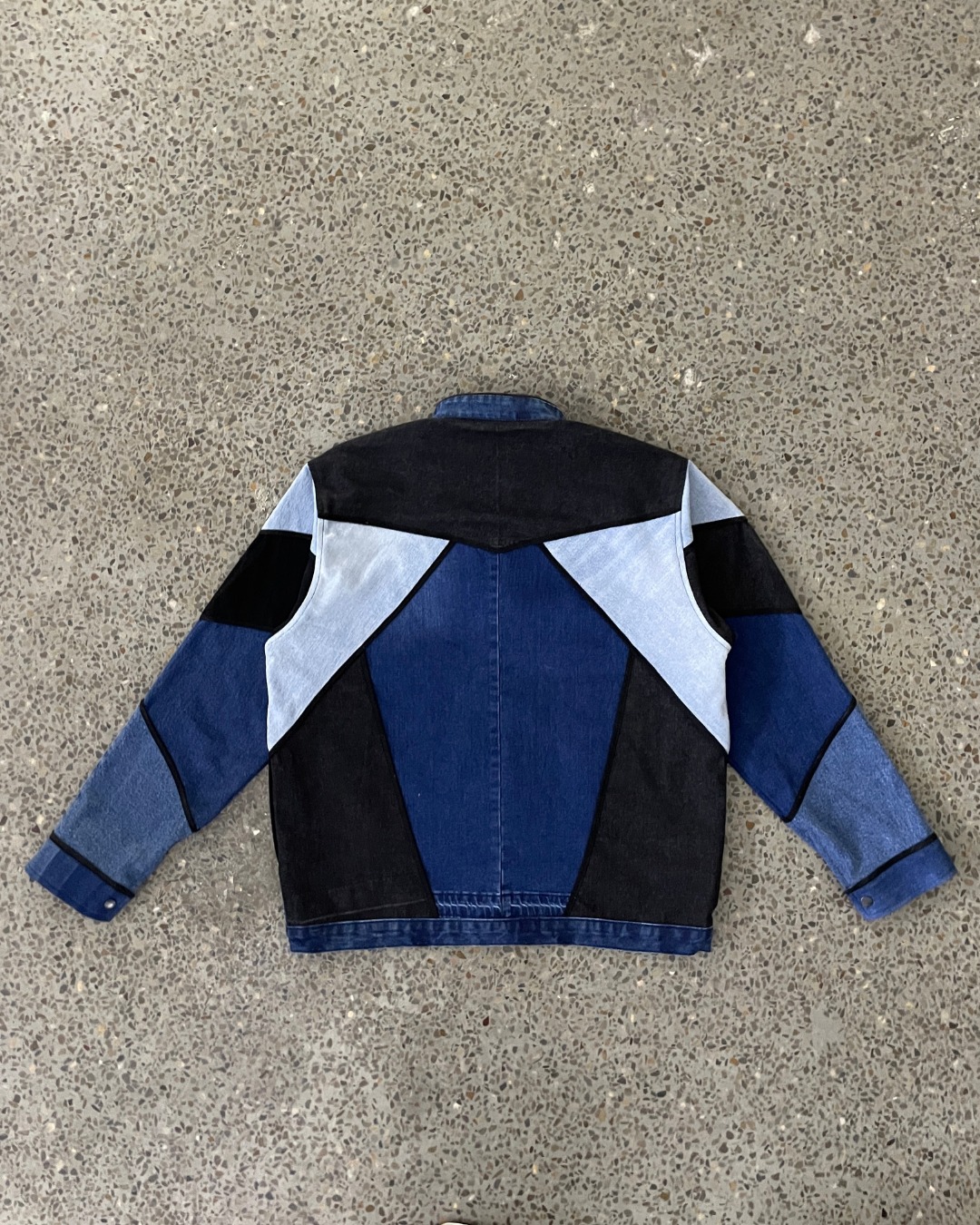 Upcycled Geometric Panel Denim Jacket
