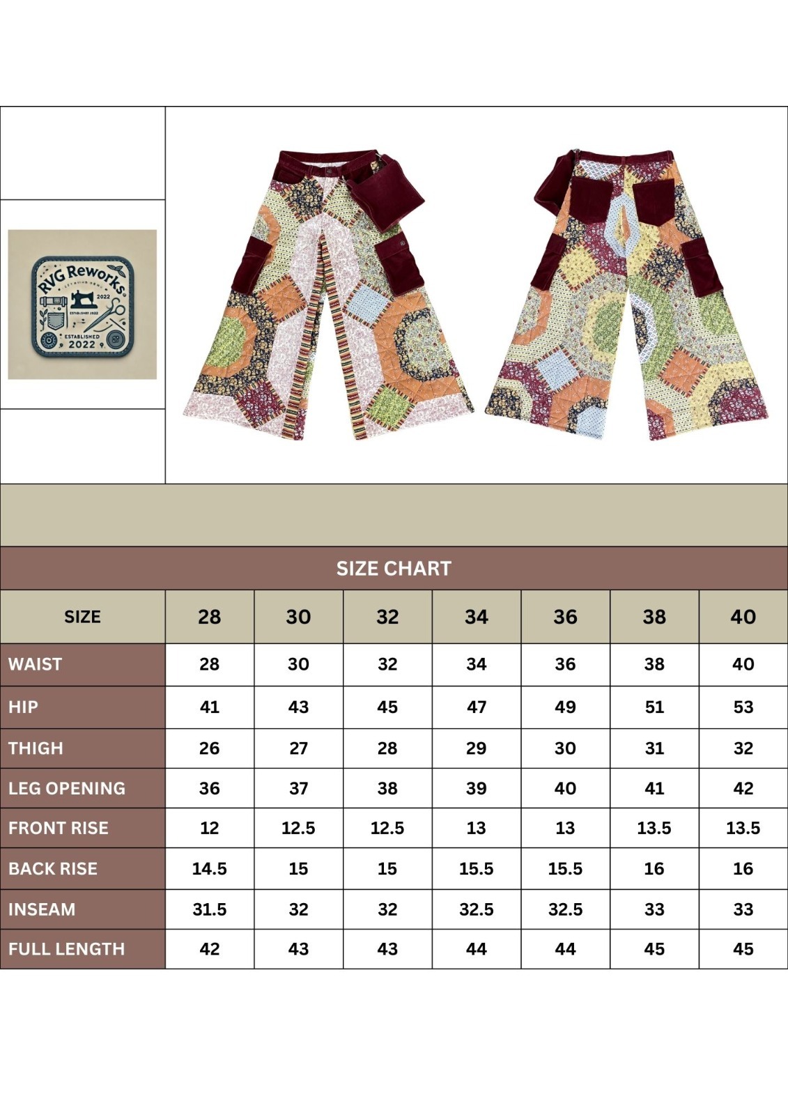 Upcycled Patchwork Quilted Trousers with pouch