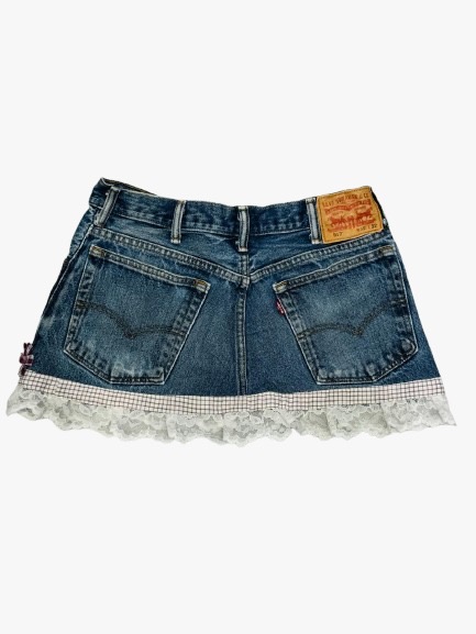 • Reworked Y2K-style denim skirt design