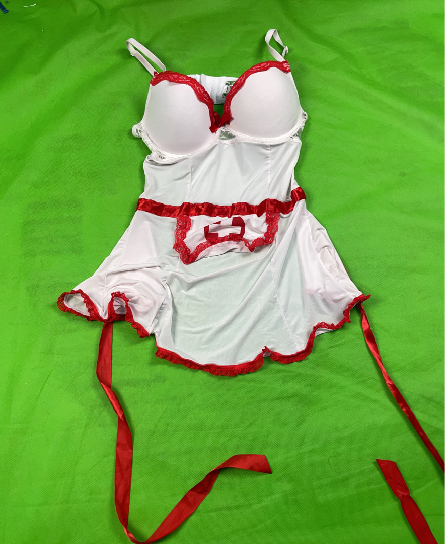 White Lingerie Set with Red Trim
