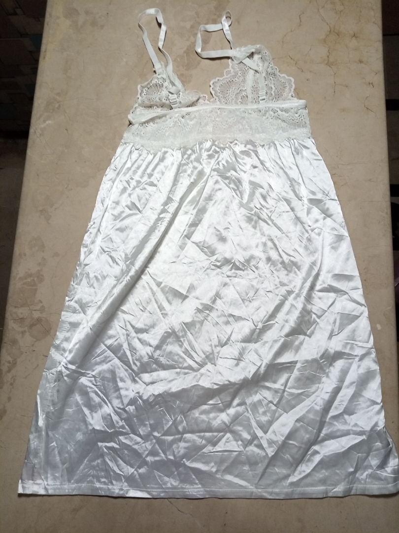 White Satin Chemise with Lace Trim