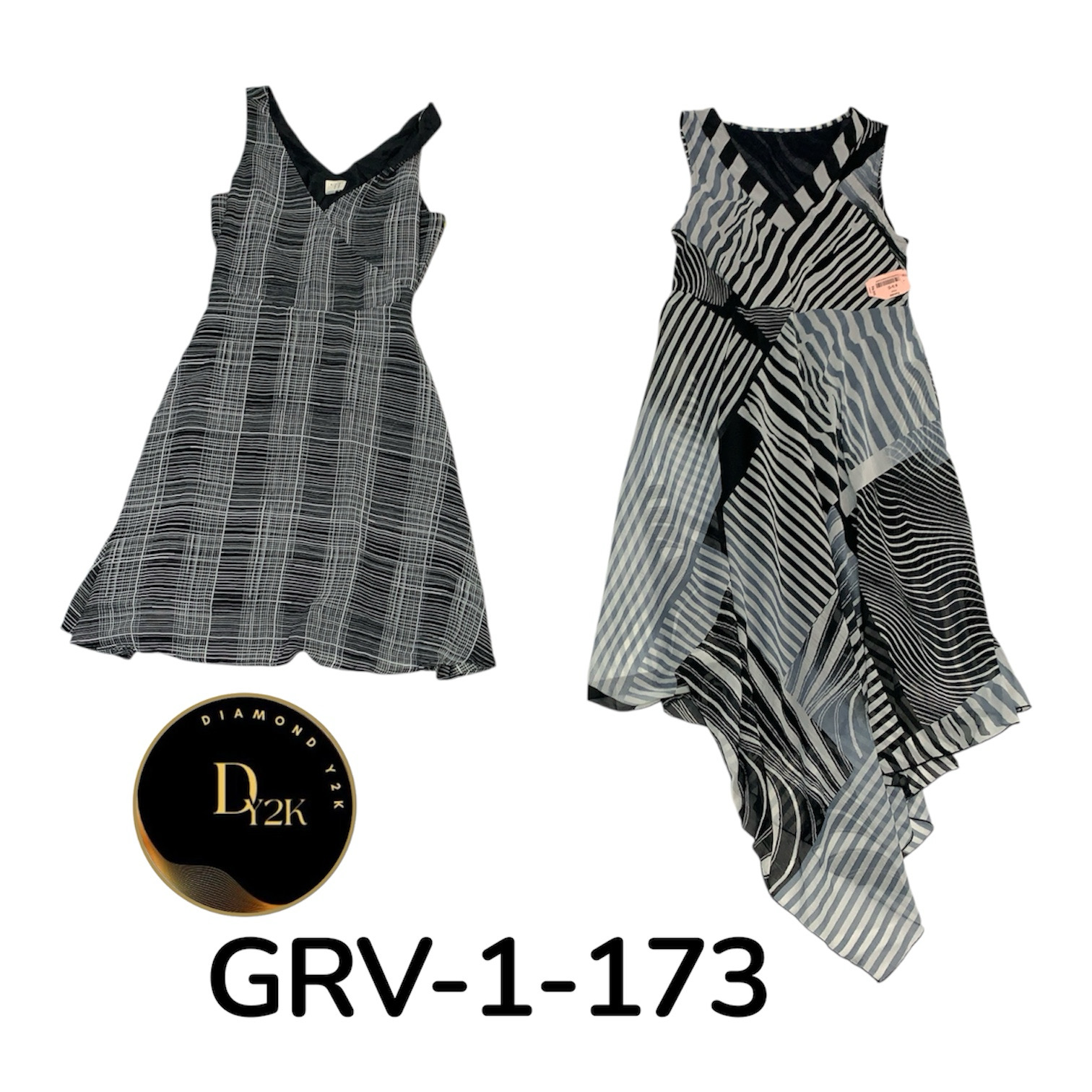 Women’s Y2K Black & White Printed Poly Dress – Timeless 2000s Look (GRV-1-174)