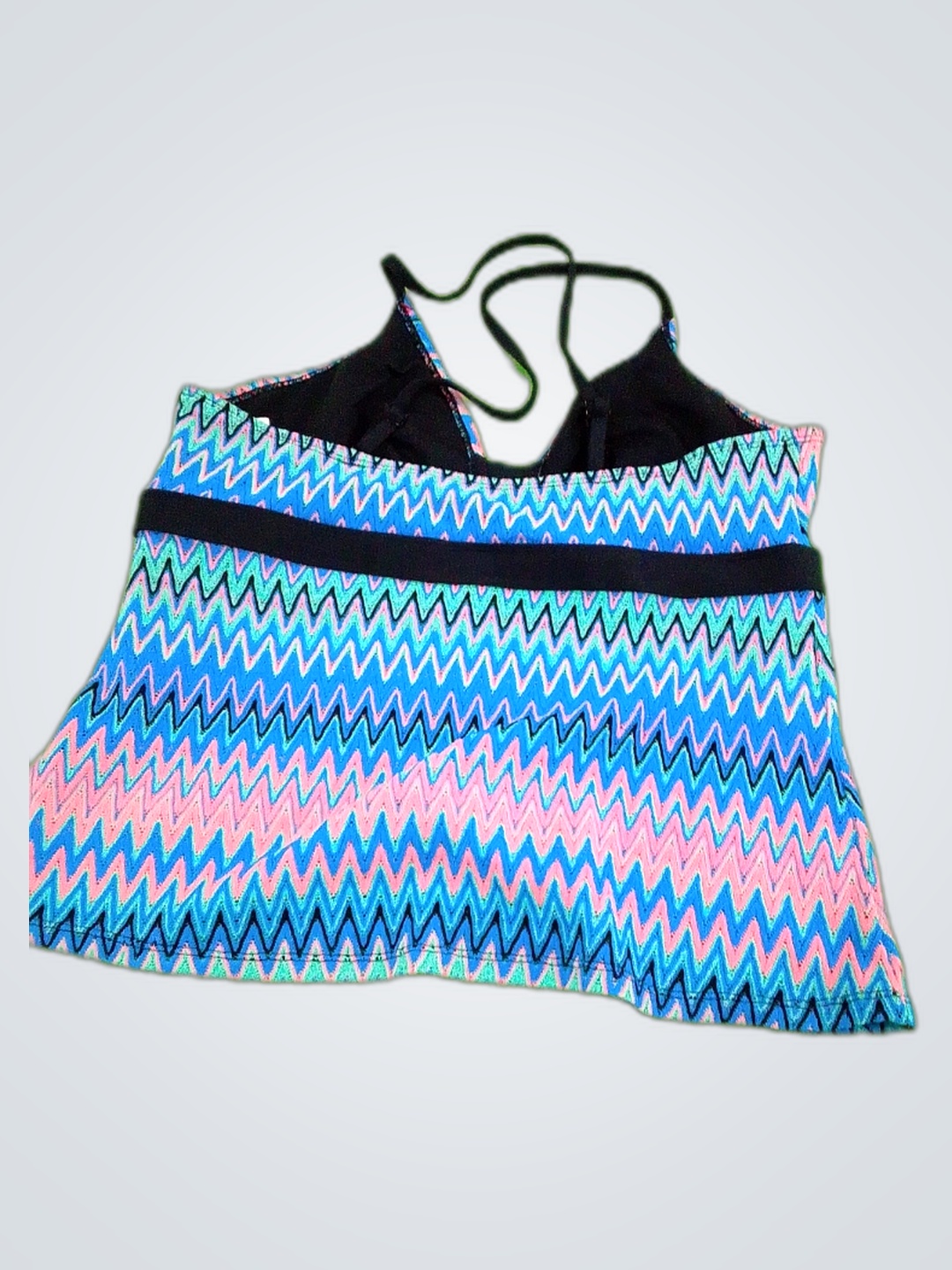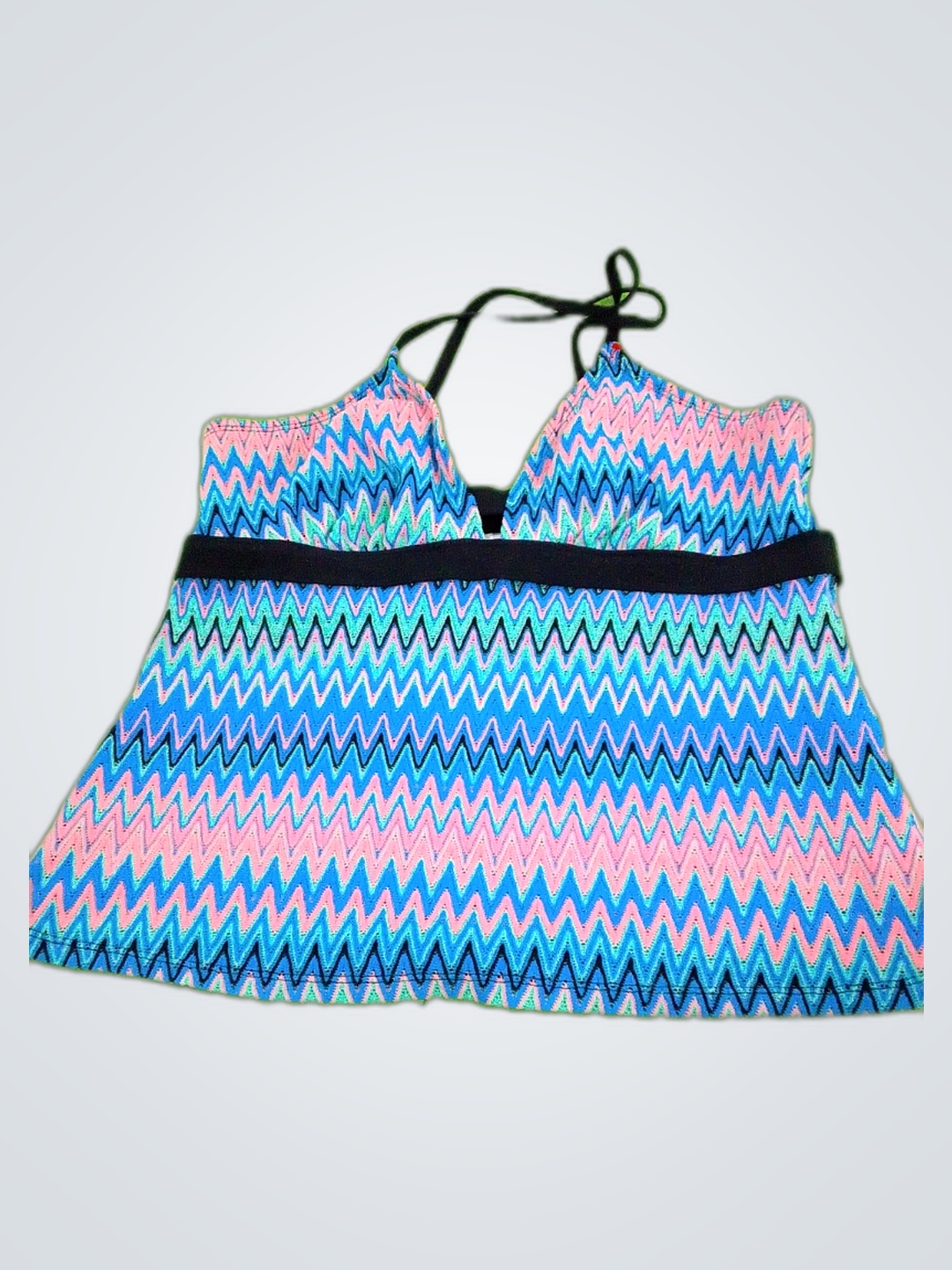 Women's Multicolor Zig Zag Halter Neck Swimsuit Top
