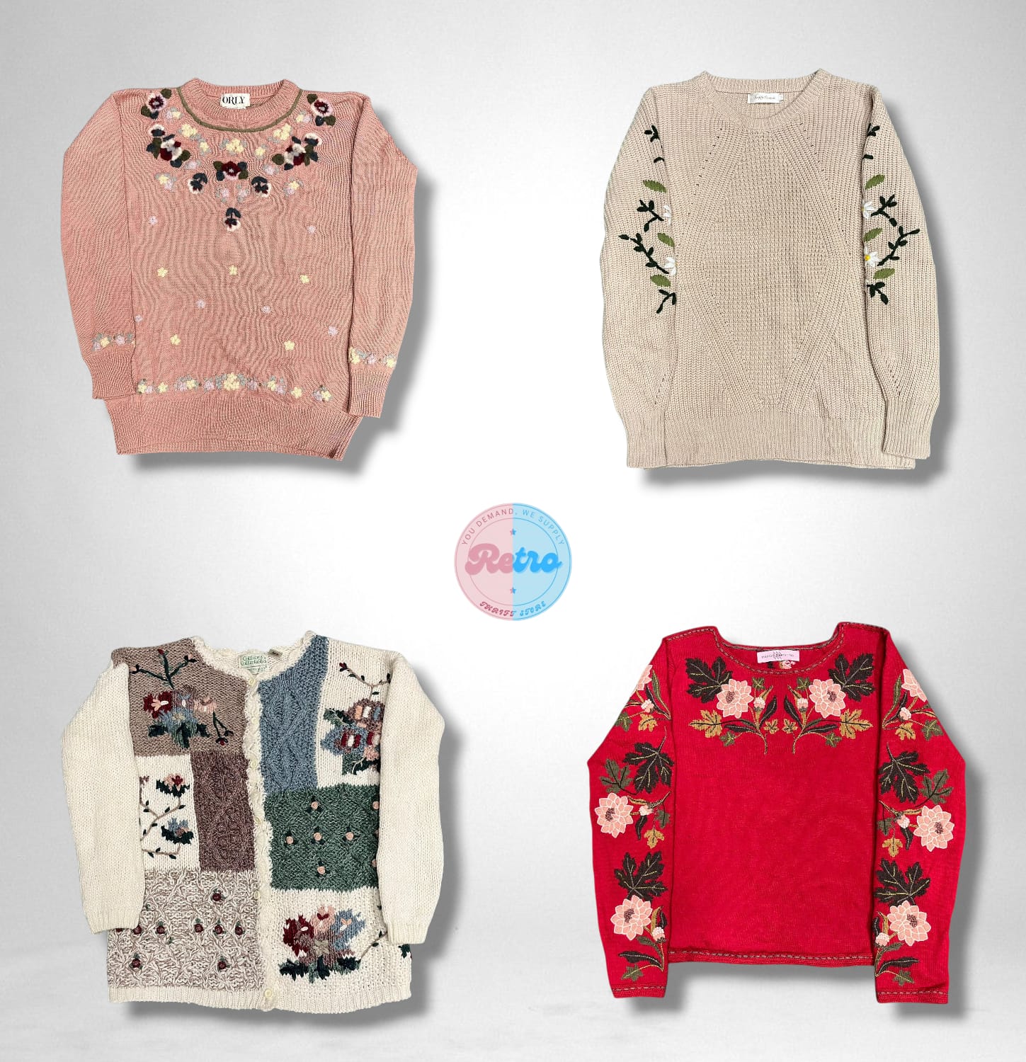 Y2K Floral Fantasy : Vintage Vibe Embroidered Knit Sweater (E)