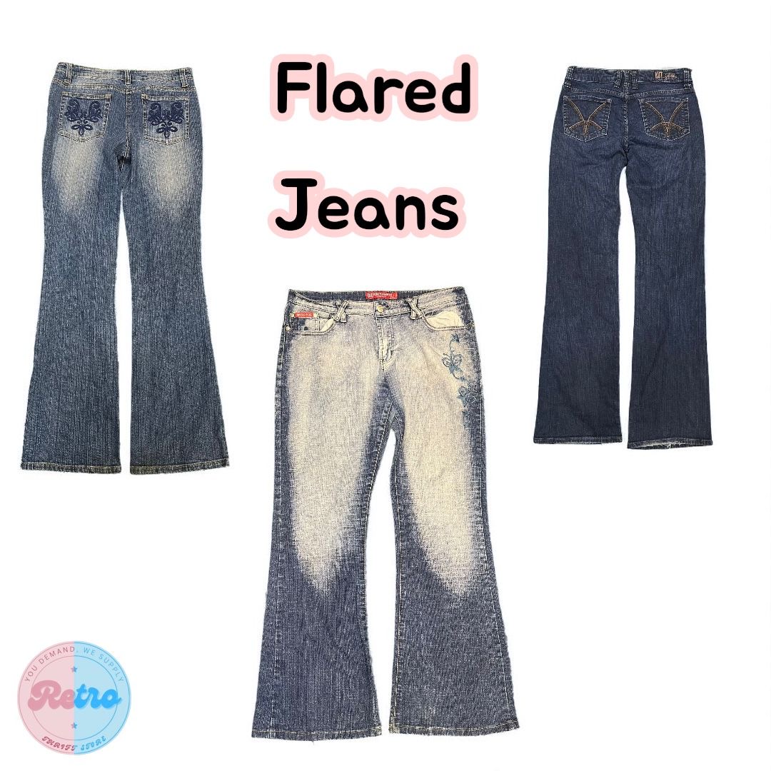 Y2K Vintage Flared Jeans – Embroidered, Butterfly Back & Faded Wash – 9 Pcs