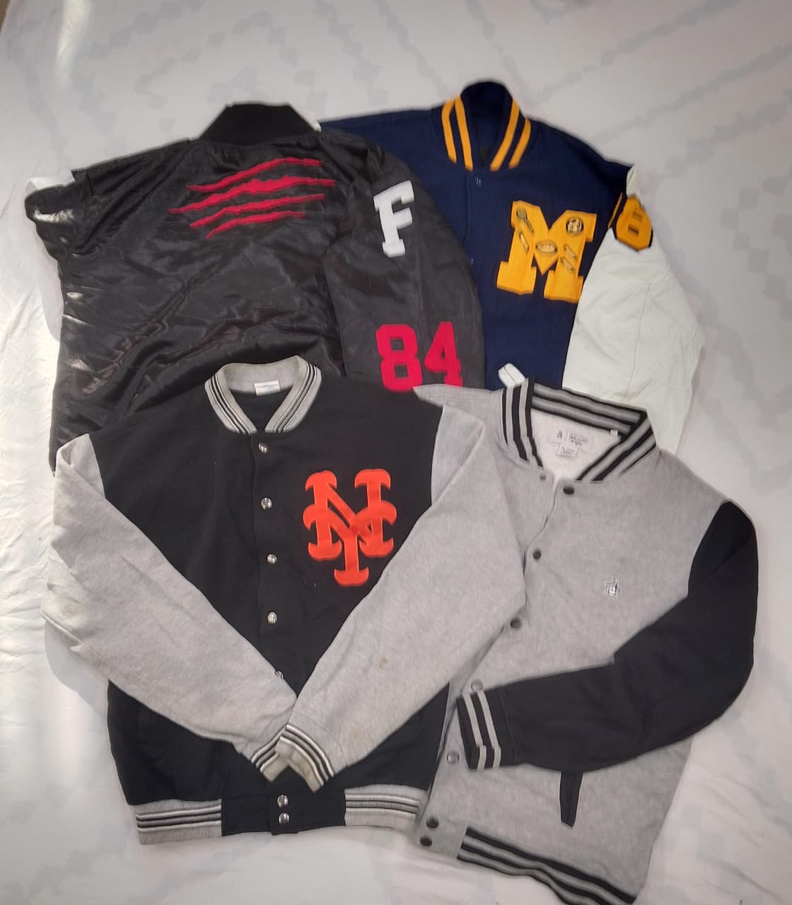 Step back in time with this Vintage College Jacket Bundle, featuring classic varsity and letterman styles. Each jacket showcases authentic collegiate design, color-block patterns, and retro patches, perfect for collectors or vintage streetwear enthusiasts.